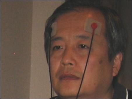 這臺機器有6個觸點,即額頭、雙手、雙腳(均需要皮膚裸露于金屬板上,有點類似做心電圖)。
