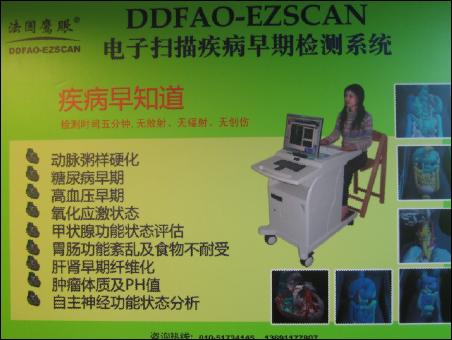 通過六個電極片向人體22個體區(qū)發(fā)射1.25V低壓直流電,然后收集人體細胞和間質(zhì)細胞的生物電信息,包括:電阻、電壓、電傳導性、PH值和動作電位,把這些信息按照數(shù)字模擬、3D重建,反映人體組織器官的生物活性和生理功能,對人體功能進行全面評估??梢詼蚀_預測潛在危險因素和疾病發(fā)展方向。