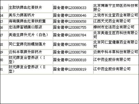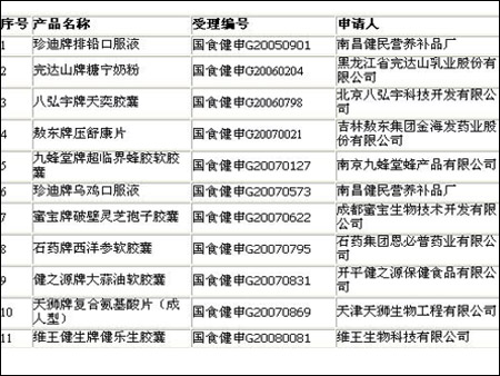 從下表中可以了解到(第30、31項),兩個在申請過程中的"初元”產(chǎn)品均未獲得SFDA批準,是否因為產(chǎn)品存在技術缺陷尚不得而知!成琴女士提醒消費者購買保健品時一定要認準保健食品標志(一般稱為‘藍帽子’),因為具有保健食品標志的產(chǎn)品經(jīng)過了政府的審查,其生產(chǎn)過程在政府監(jiān)督之下,其安全性和有效性值得消費者充分信任。