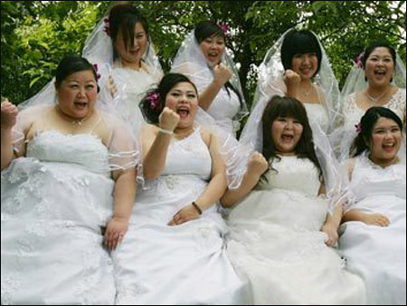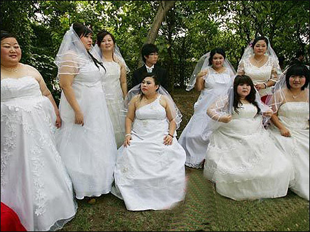 據(jù)介紹,9位身披白紗的準(zhǔn)新娘中,有8位是從全國各地246位報名的胖mm中招募篩選而來,體重均在150斤以上,他們大多在廣州相知相愛;而廣東女孩曾晶更達到了220斤,被網(wǎng)友稱為“中國第一肥模”,特地親手設(shè)計制作了自己的婚紗。