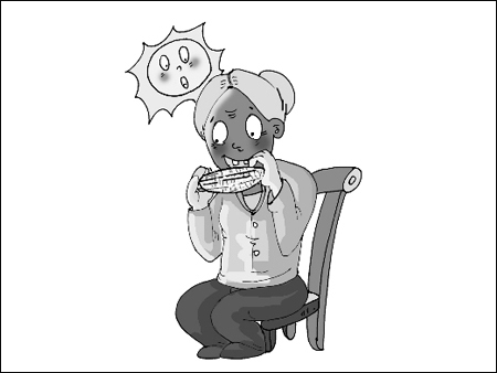 驚頓頓吃玉米 六旬老婦成“黑人”