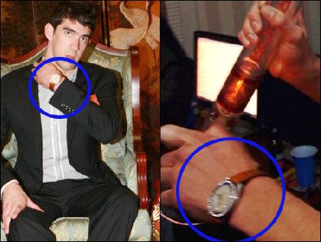 不過按照規(guī)定,一旦菲爾普斯吸毒一事被證實(shí),那么他必將面臨長(zhǎng)達(dá)4年的禁賽。而《世界新聞報(bào)》也為菲爾普斯吸毒提供了強(qiáng)有力的證據(jù),"如果你不相信這張照片真的是菲爾普斯,那么就和下面的這些照片對(duì)比一下,在08年菲魚出席各式活動(dòng)的照片中,他左手腕上都戴著同樣的手表。"