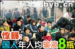 (來源:廣州日報)關注:據(jù)報道,中國目前每年人均8瓶的輸液量將發(fā)達國家拋在了身后。中國安全注射聯(lián)盟的統(tǒng)計數(shù)據(jù)顯示,我國每年因不安全注射導致死亡的人數(shù)在39萬以上,其中,每年約有20萬人死于藥物不良反應,保守估計,每年我國最少有10萬人在輸液后喪命。 ? 種種數(shù)據(jù)和案例說明,“能吃藥不打針,能打針不輸液...